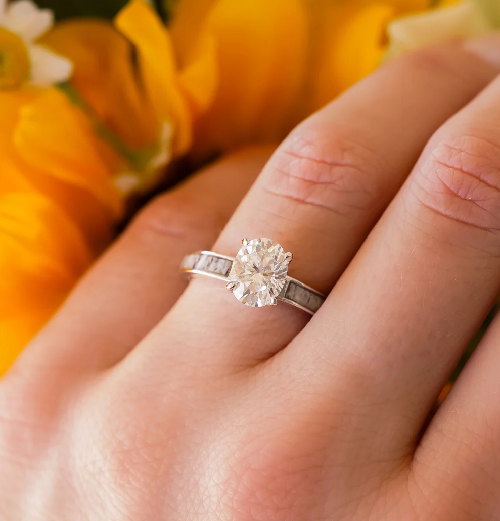 Moissanite offers all the sparkle of a diamond at a fraction of the cost. That means you can choose a larger stone without overspending, freeing up your budget for custom details, matching pieces, or future adventures.