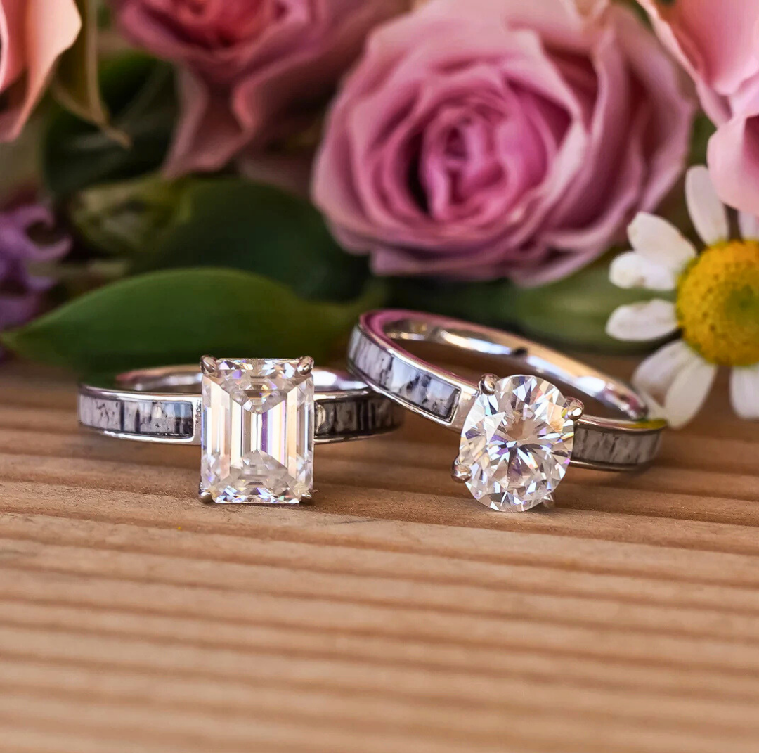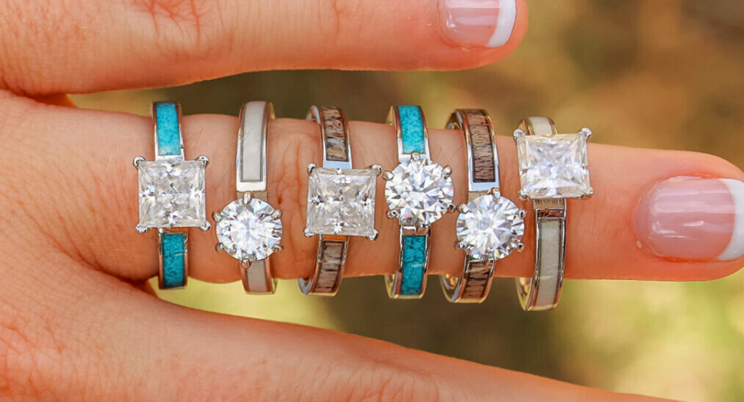 At Antler Rings, our moissanite collection blends bold beauty with our signature rugged charm. From antler inlays to turquoise accents, each piece reflects the spirit of the West.