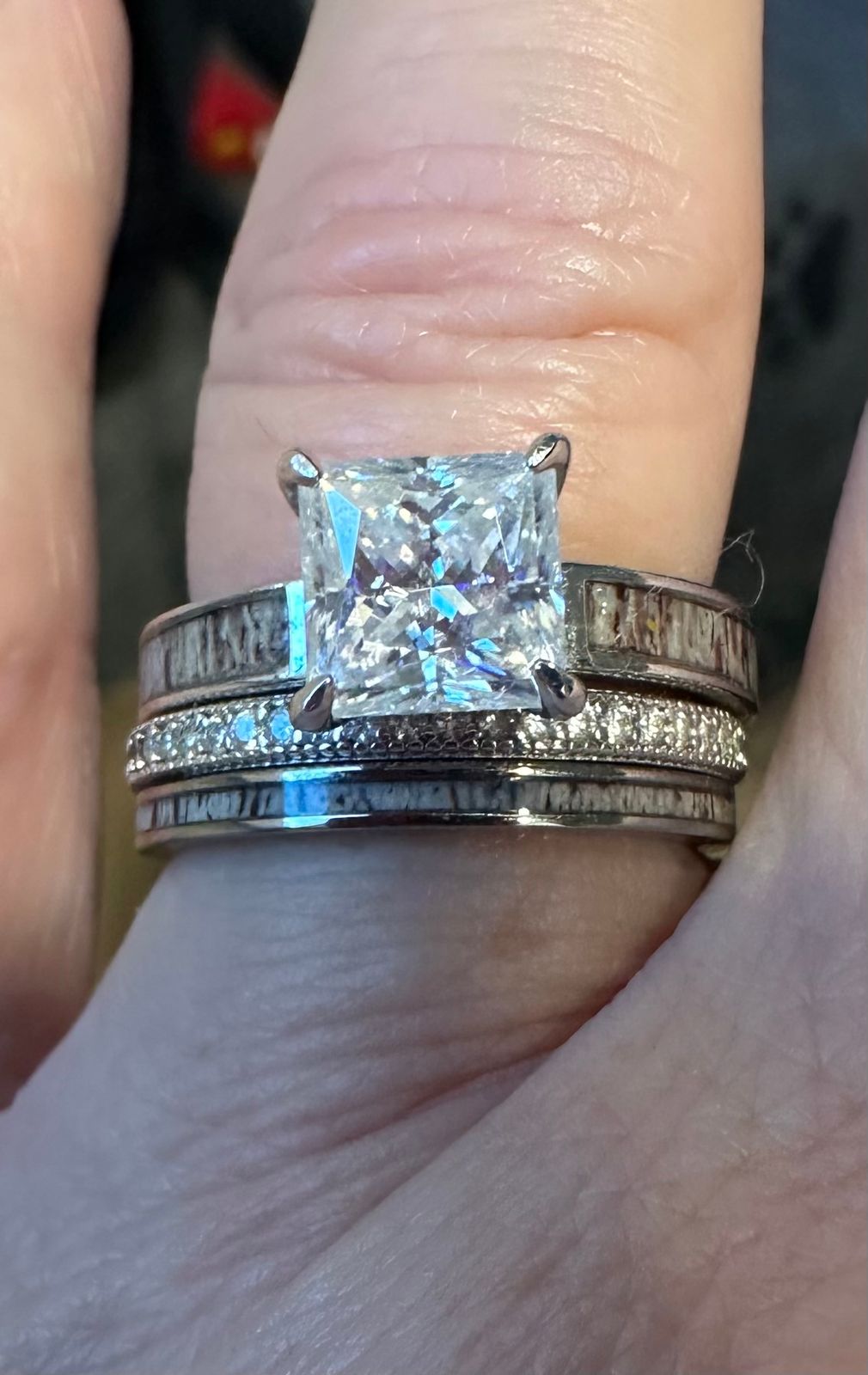I’m just thrilled with my ring! I recommend the Lux as it just shines and sparkles. My Engagement ring is a 6 and while asking the people from Antler about suggestions they said go 1/2 size up for the bands. I’m glad I did! Fits perfectly!