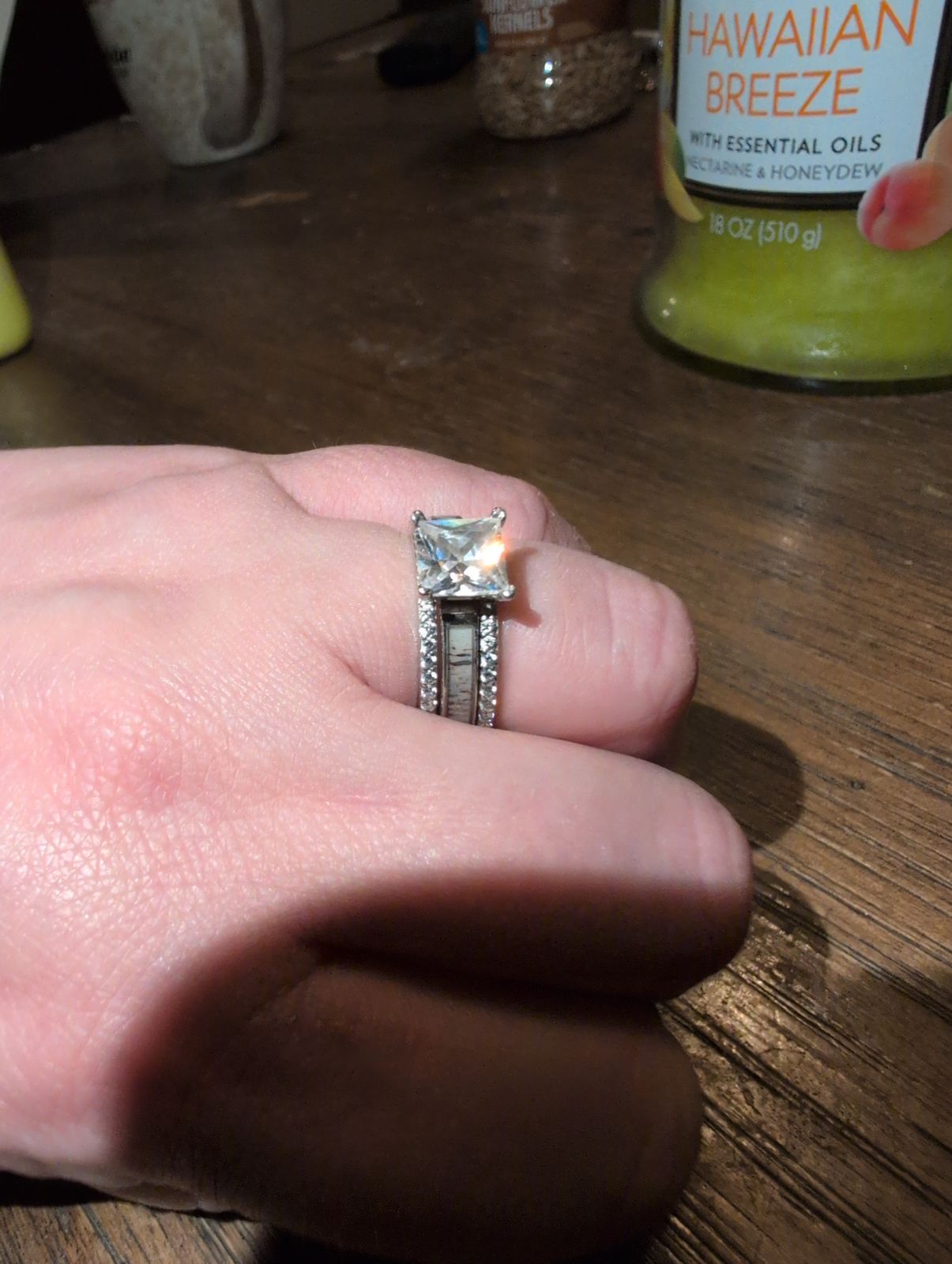 So my wife loves Facebook. For whatever reason she started seeing ads and video shorts for Antler Rings. She'd show me a couple but I'd constantly catch her looking at them. So around Valentine's Day I decided to get her one. The added earring aren't her style but they're growing on her. Honestly, she loved the little band that came with it. She'd can't wear a ring at work unless it's a plain metal or silicone band, so that was an awesome surprise. Overall it looks great, fits perfect and she is a happy wife. Thanks guys